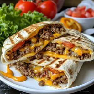 Enjoy these Grilled Cheeseburger Wraps that combine the best of burgers and wraps into one delicious handheld treat! 🌟🍔🌯