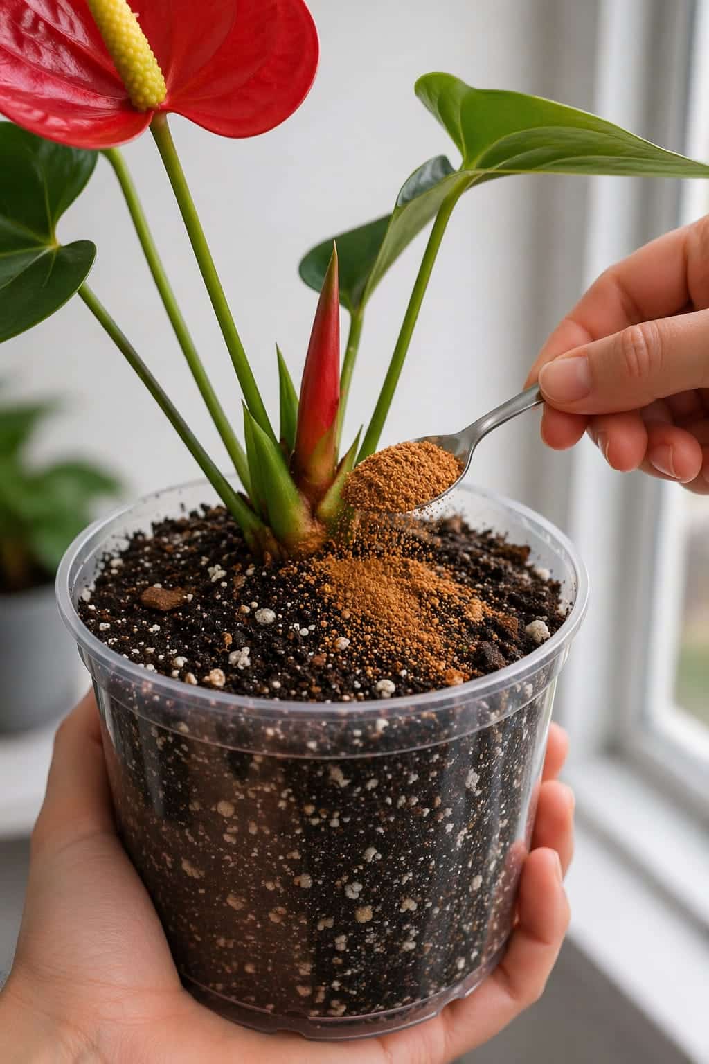 This is where many plant lovers start trying powders, granules, or homemade mixes. You may have seen videos of a brown powder being sprinkled onto anthurium soil, claimed to be a miracle bloom booster.