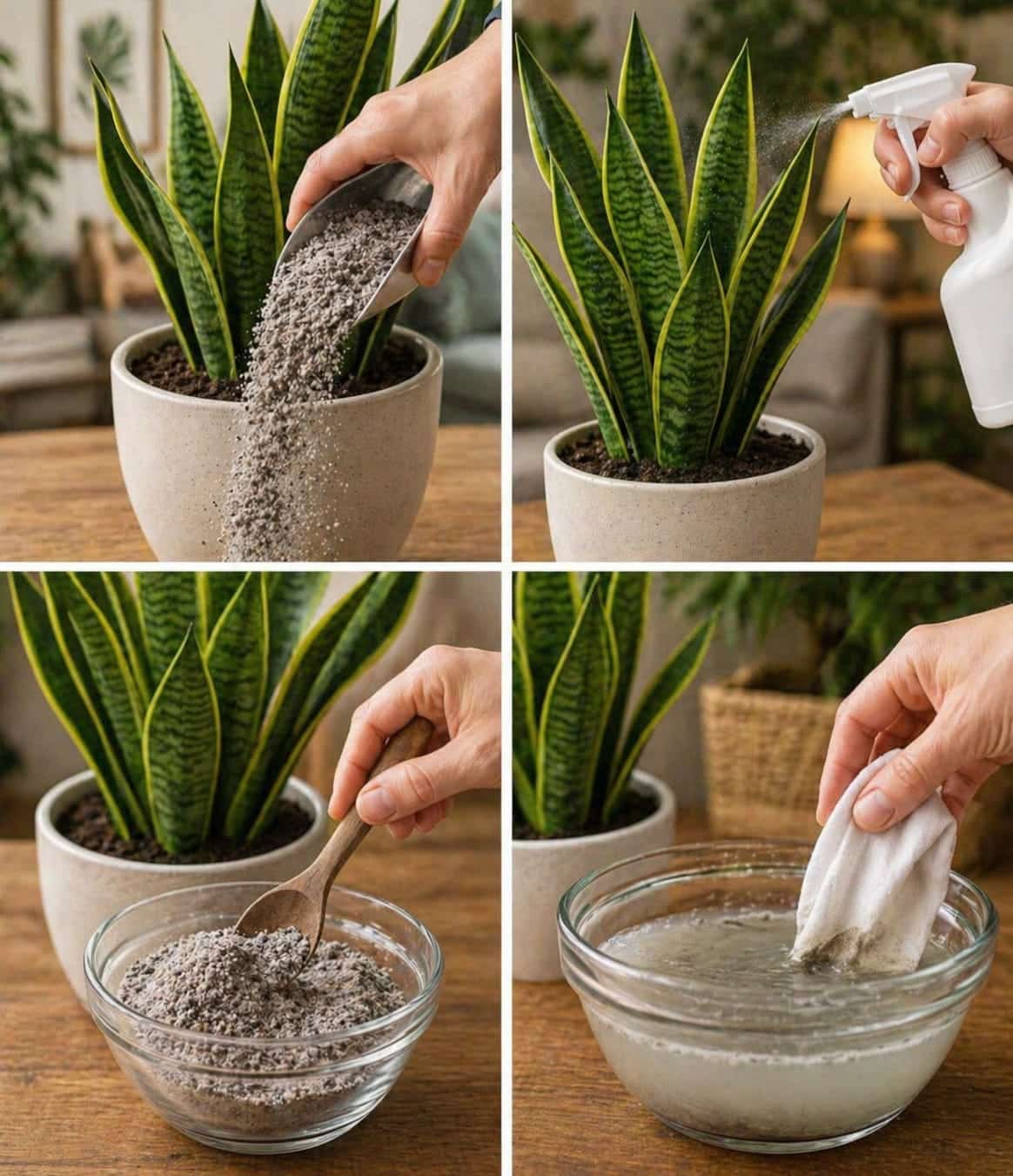 The image of wood ash being mixed, sprayed, or soaked beside a snake plant can make the trick look dramatic and powerful. But with indoor plants, less is almost always better. A snake plant can benefit from careful attention, but it does not need aggressive feeding. This trick works best when it is gentle, diluted, and used only once in a while.