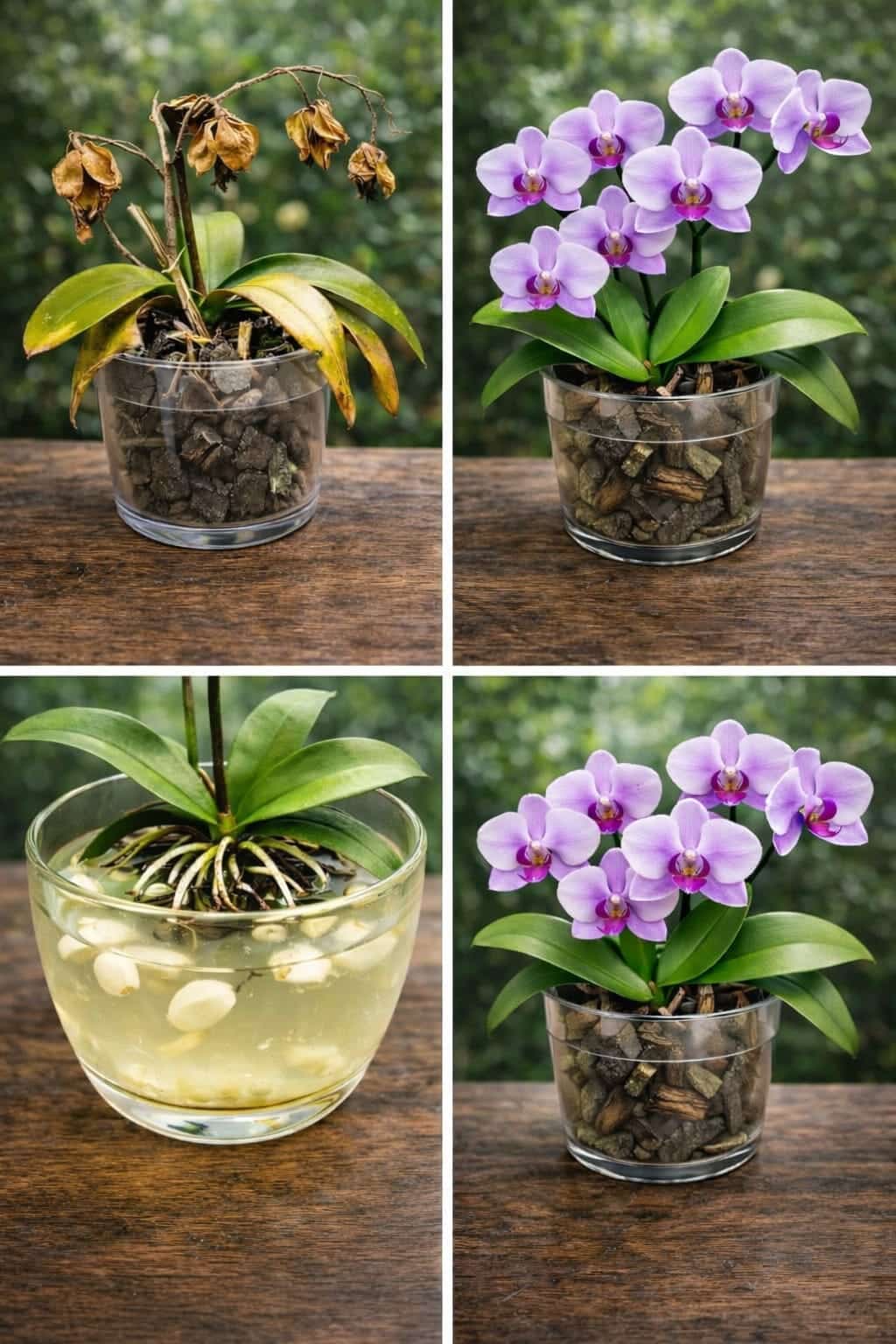 You’ve probably seen viral posts claiming that a rotten orchid can be revived instantly with a simple garlic soak. The videos are dramatic: a dying orchid, a glass of cloudy liquid, and suddenly – new roots! It sounds almost too good to be true – and in one important way, it is. Garlic water is not magic, and it will not bring a dying orchid back overnight. But used carefully, it may support recovery as part of a proper rescue routine.