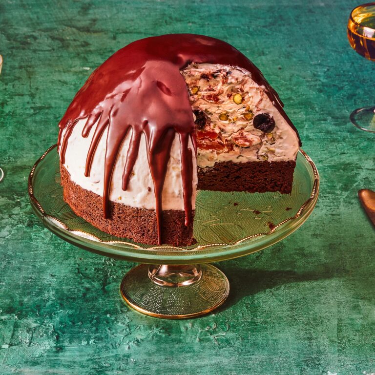 Christmas Bombe with Spiced Cake and Chocolate-Brandy Glaze