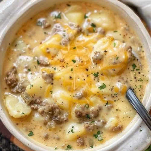 There’s something undeniably comforting about a bowl of hot, cheesy soup on a chilly day. This Cheesy Hamburger Potato Soup is everything you want in a cozy meal—rich, hearty, and loaded with flavor. Packed with savory ground beef, tender potatoes, melty cheddar cheese, and a creamy base, every spoonful is a warm and satisfying bite of pure comfort food.