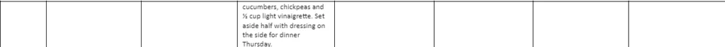 As a general rule, ladies should aim for 1500 calories each day. Here’s a handy tool for calculating your calorie requirements. I’ve left plenty of opportunity for you to add more food items like coffee, drinks, fruits, snacks, dessert, wine, and so on Meal Plan. Green salad contains 12 cups mixed greens, 4 onions, 1 cup each of tomatoes, carrots, cucumbers, and chickpeas, and 12 cup mild vinaigrette. Set half aside with dressing on the side for dinner on Thursday.