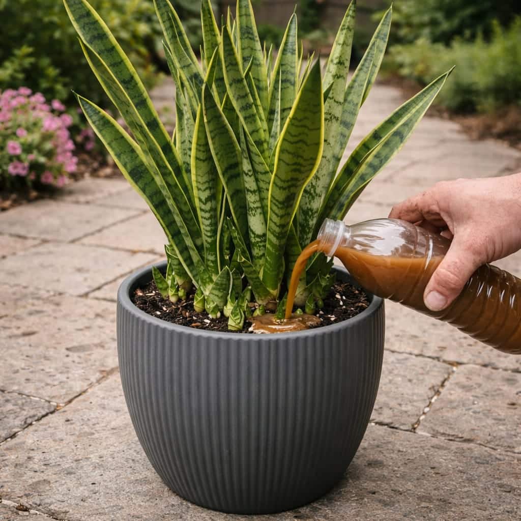 If a snake plant is sitting in soggy soil, trapped in deep shade, or suffering from root rot, fertilizer alone will not save it. In fact, adding more liquid to an already stressed root system can make things worse.
