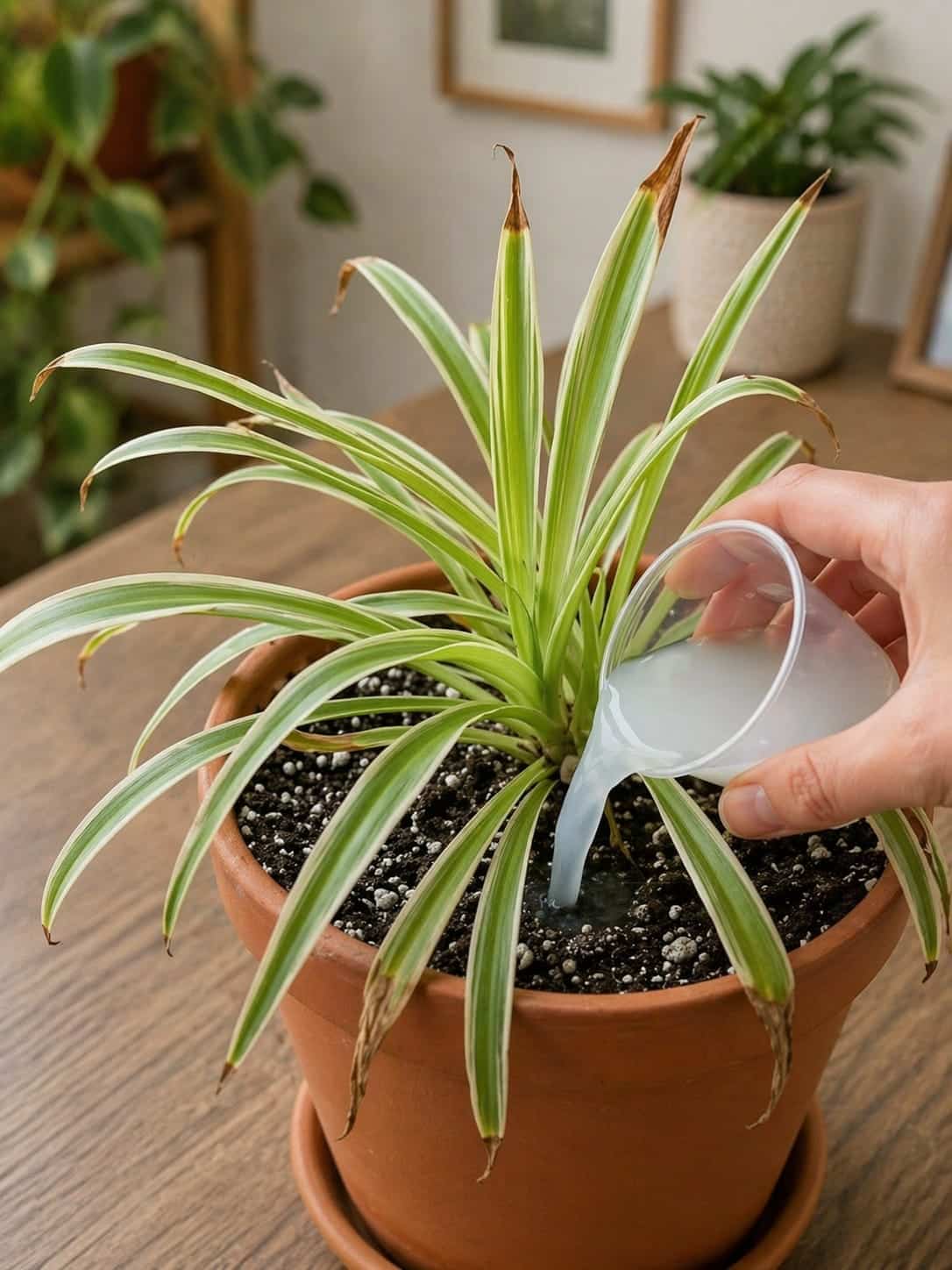 One of the biggest hidden causes of brown tips on spider plants is tap water quality. Spider plants can be sensitive to: