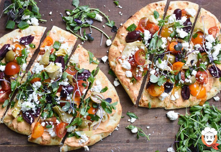 Mediterranean Naan Bread Pizza is a delightful and healthy dish that can be enjoyed as an appetizer or a meal.