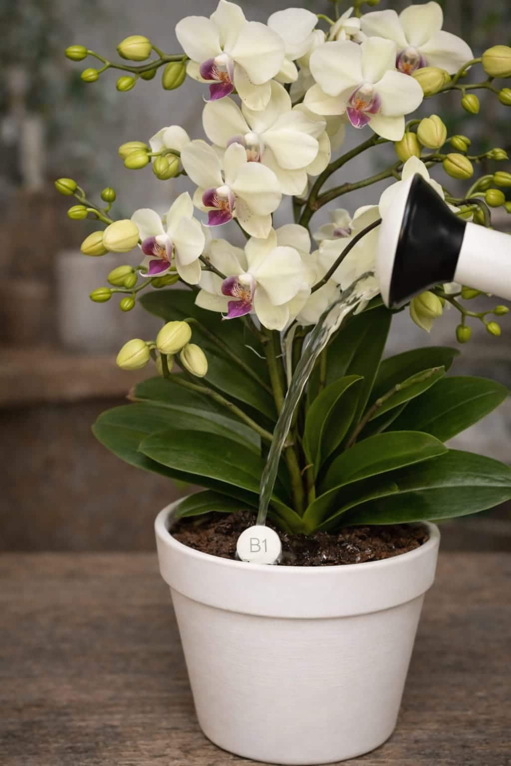 - Pour a small amount of diluted orchid fertilizer through the pot (about ¼ cup for a 4‑inch pot).