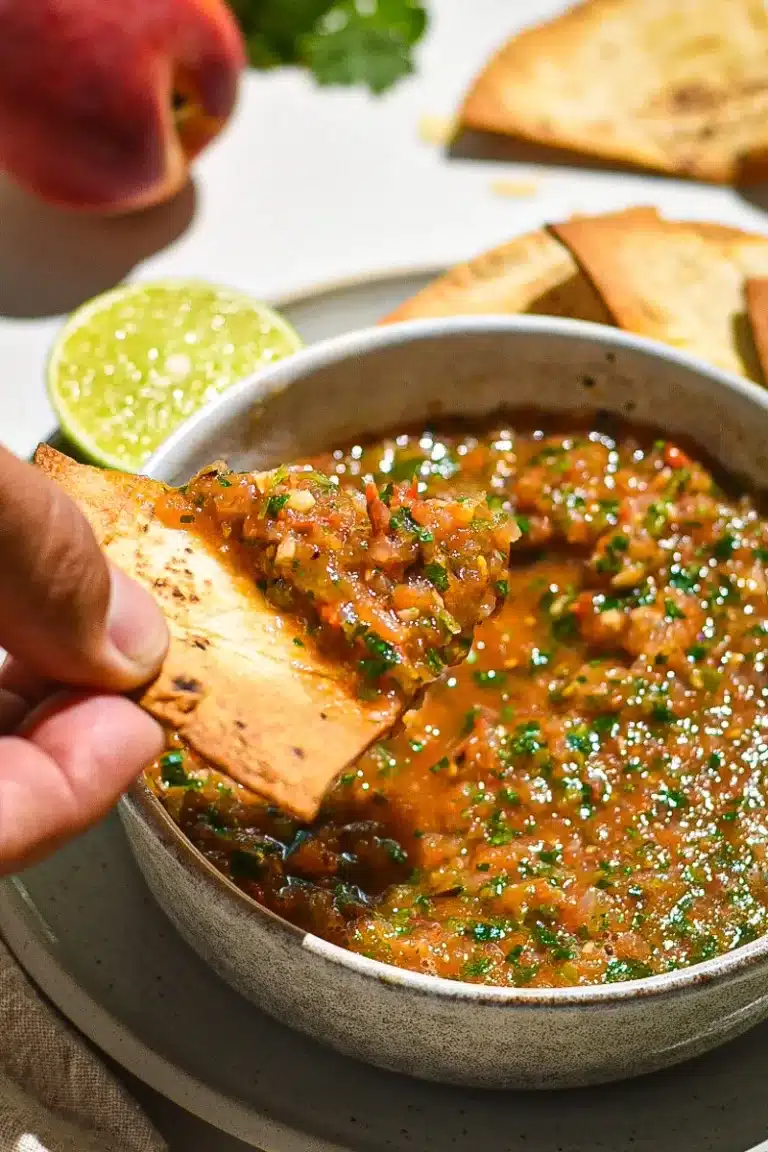 Grilled Peach and Tomato Salsa, which is as much fun to create as it is to eat! This zesty salsa is a flavor explosion in your tongue.