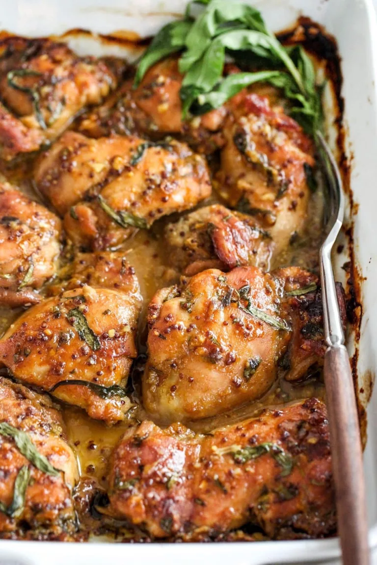 Two varieties of mustard are used in this recipe for honey mustard chicken thighs, along with a dash of soy …