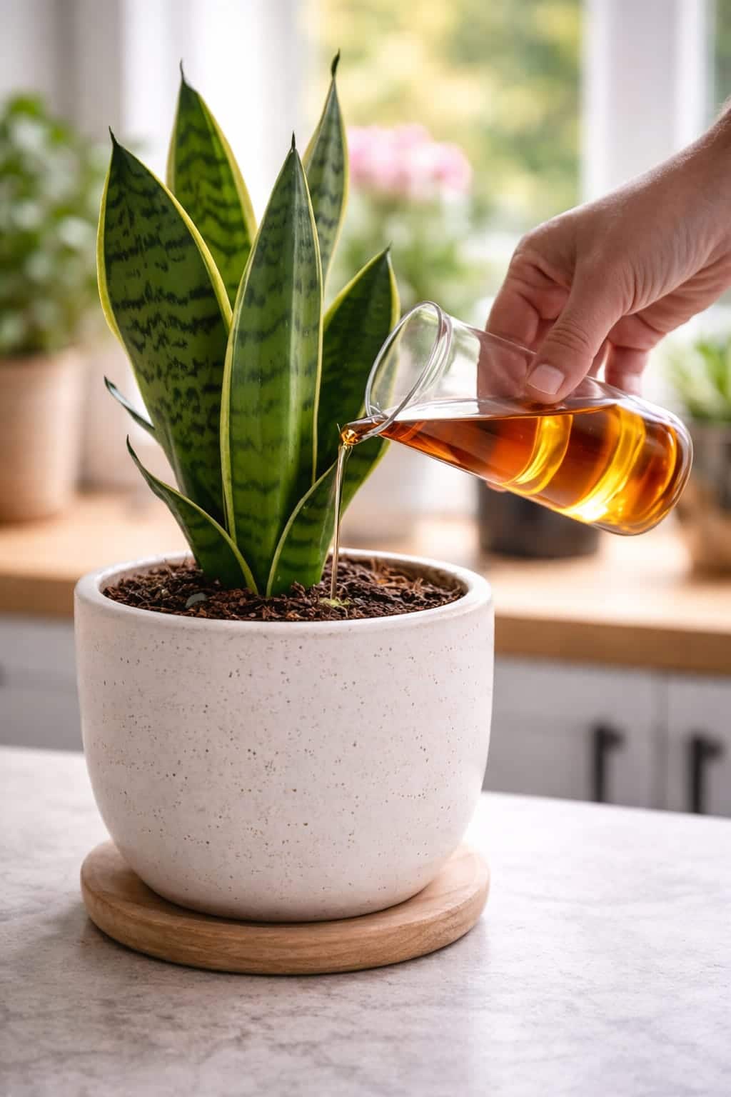 · Use a small amount on the soil only – about ¼ cup for a 6‑inch pot.