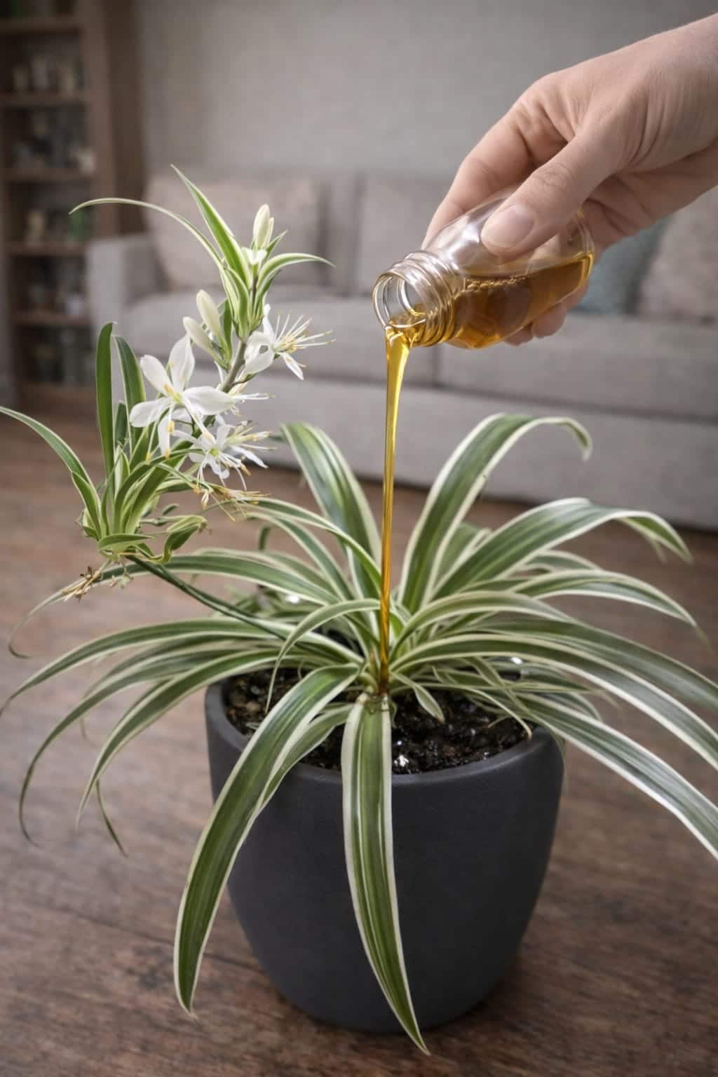 Discover why gardeners use a dark liquid (diluted compost tea or mild nutrient solution) on spider plants – to support soil health, encourage baby plantlets, and promote steady growth. Safe application tips inside.