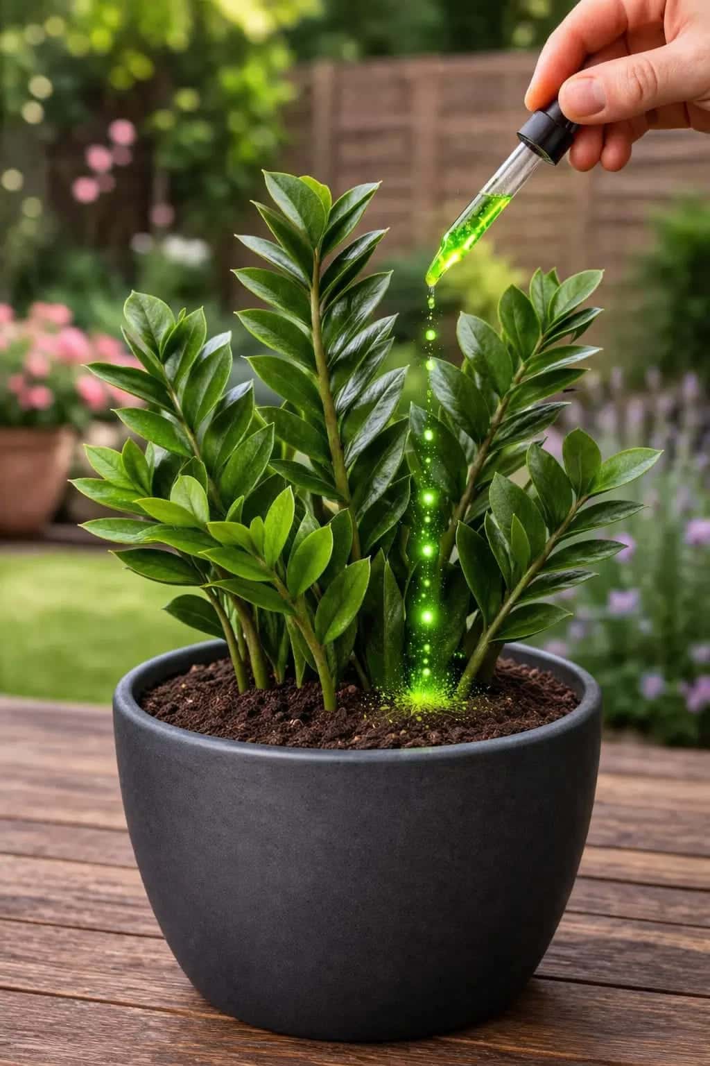 So when you see gardeners pouring a bright green liquid onto it, it looks like a powerful growth secret. The videos are dramatic: a dull ZZ plant, a splash of green, and suddenly – vibrant, glossy leaves. The results appear stunning.