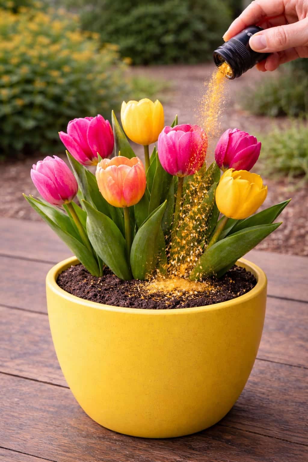 Want bigger, brighter tulip blooms? Learn why gardeners use a golden powder (balanced fertilizer or phosphorus-rich plant food) on tulips – and how to feed correctly for stunning flowers. Complete tulip care guide inside.