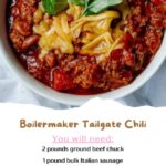 Heat a large stock pot over medium-high heat. Crumble the ground chuck and sausage into the hot pan, and cook until evenly browned. Drain off excess grease.