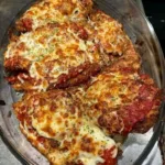 Place the fried chicken in the prepared baking dish. Spoon marinara sauce over each chicken breast, then top with shredded mozzarella cheese.