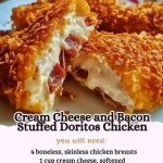 This **Cream Cheese and Bacon Stuffed Doritos Chicken** is a fun and flavorful twist on your classic stuffed chicken. With a crispy Doritos coating and a creamy bacon filling, this dish is sure to be a hit for family dinners or a special gathering. It’s easy to prepare, full of flavor, and has just the right amount of crunch from the nacho cheese Doritos!