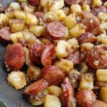 Remove the lid, increase the heat to medium-high, and cook for an additional 5 minutes, or until the potatoes and sausage are nicely browned.