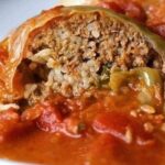 In a bowl, mix the ground beef, onion, rice, egg, garlic powder, paprika, salt, and pepper.