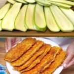 This quick and crispy Parmesan-crusted zucchini recipe is a delicious way to enjoy zucchini as a snack or appetizer. Coated in a flavorful mixture of Parmesan cheese, breadcrumbs, and spices, these zucchini slices are fried to golden perfection, creating a crunchy exterior while keeping the zucchini tender inside.