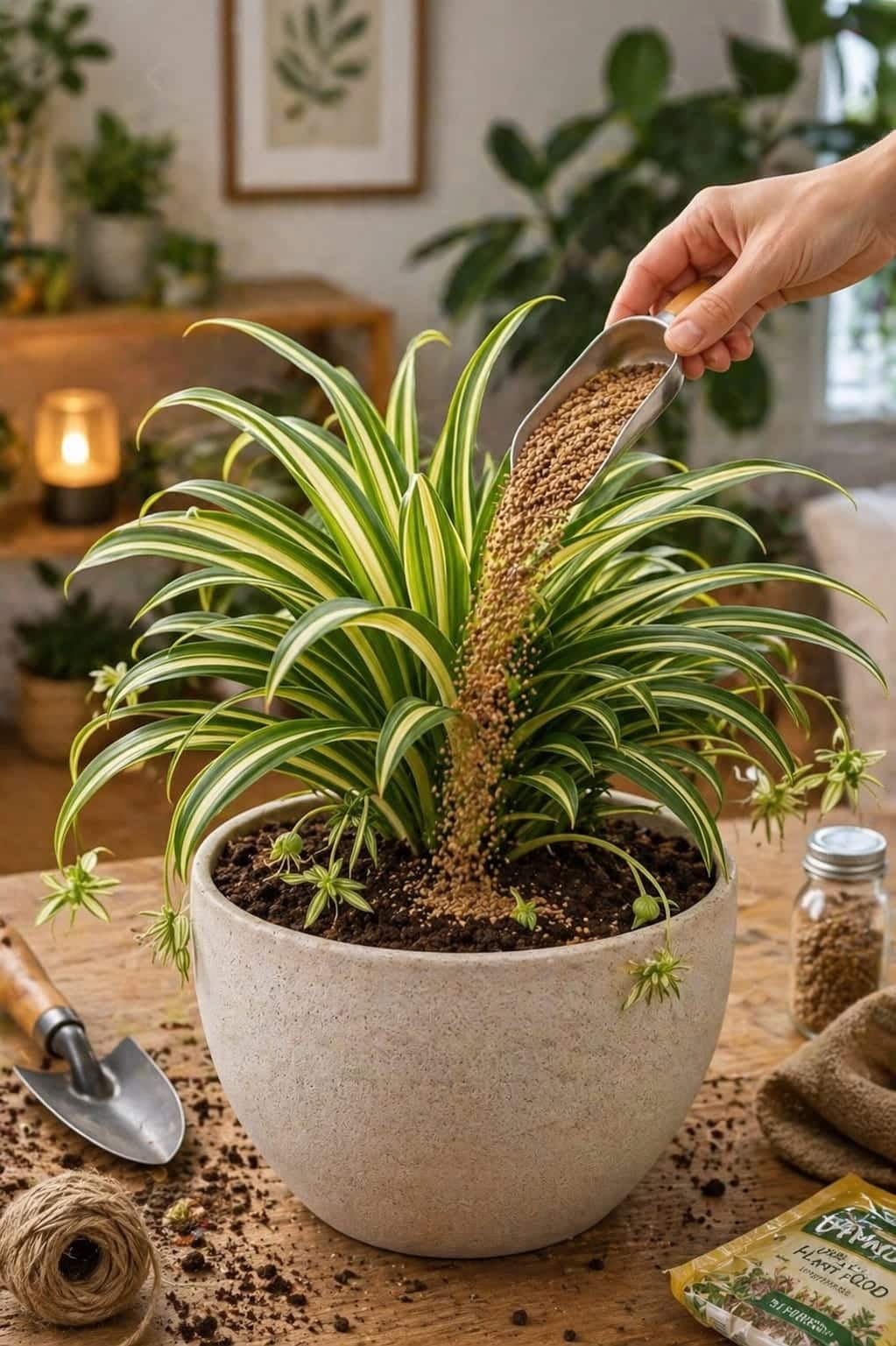 In many viral plant reels, you’ll see someone pouring small brown or golden granules into the soil of a spider plant.